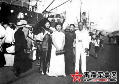 在青岛监视汪精卫、孙科时留影。当年戴笠亲自执笔,写下三份兰谱,名影星许莺莺(左三)、戴笠、陈华(左二)结为兄妹。