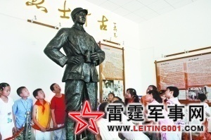图为密云县的小学生围着白乙化烈士的雕像听辅导员讲述抗战英雄的革命事迹。