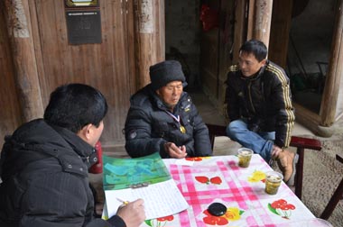 徐元禄耳背,他伸出手掌放在耳朵上助听。