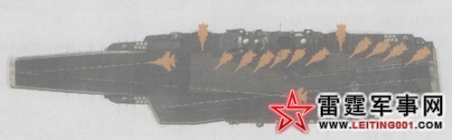 瓦舰的载机示意较,可见舰岛前6架无法通过自己的动力滑向直飞线