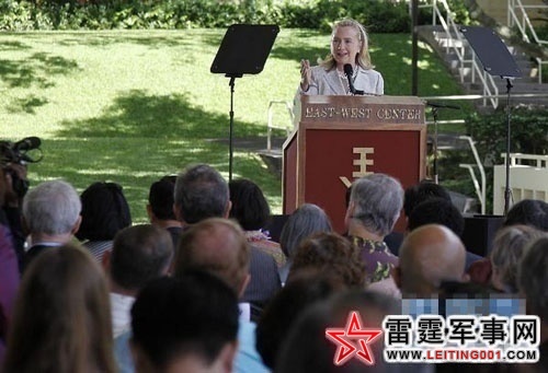 11月10日,美国国务卿希拉里·克林顿在美国夏威夷大学的东西方中心发表演讲。当日,美国国务卿希拉里·克林顿在夏威夷檀香山说,亚太地区将是美国今后外交战略的重心,21世纪将是美国的太平洋世纪。 新华社记者王丰丰摄